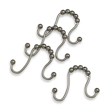 These classic shower curtain rings are an all-in-one solution to hanging a decorative shower curtain from a bath liner. Simply attach them onto your curtain rod and you have a hook on either side of the rod, and the hooks are offset so that the bath liner is hidden from view. Hooks easily roll across the curtain rod on the decorative ball bearings. Set of 12.
